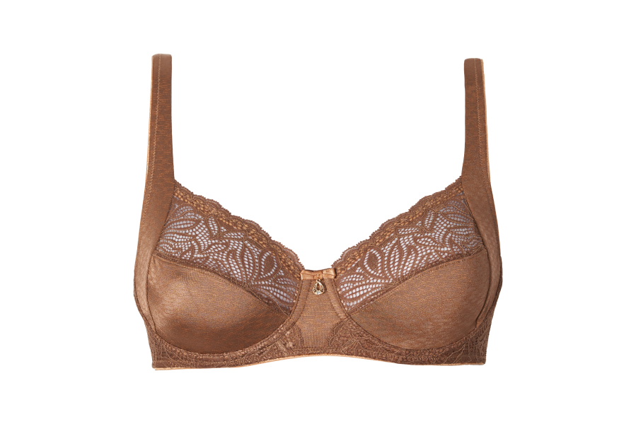 BH Delicious van DaCapo is een echte eyecatcher in een prachtige bronstint. De driedelige cups en de iets bredere schouderbandjes zorgen voor een goede support van je borsten en creëren een mooie vorm. Het kant heeft een luxueze, vrouwelijke uitstraling. Limited edition.