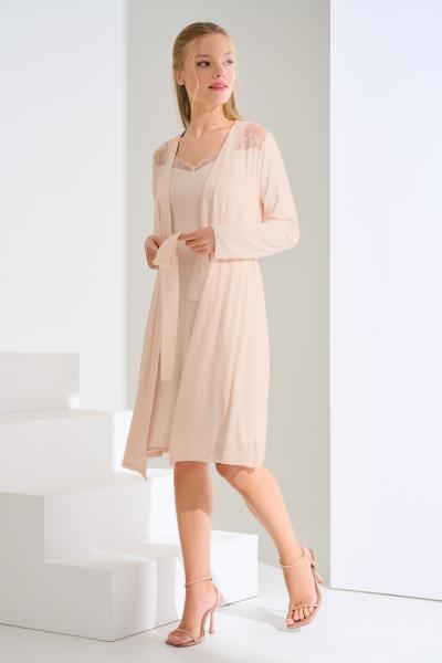 Mooie soepelvallende slipdress Patricia van Lisca met een luxueuze uitstraling. De spaghettibandjes zijn verstelbaar. Combineer met de bijpassende kimono.